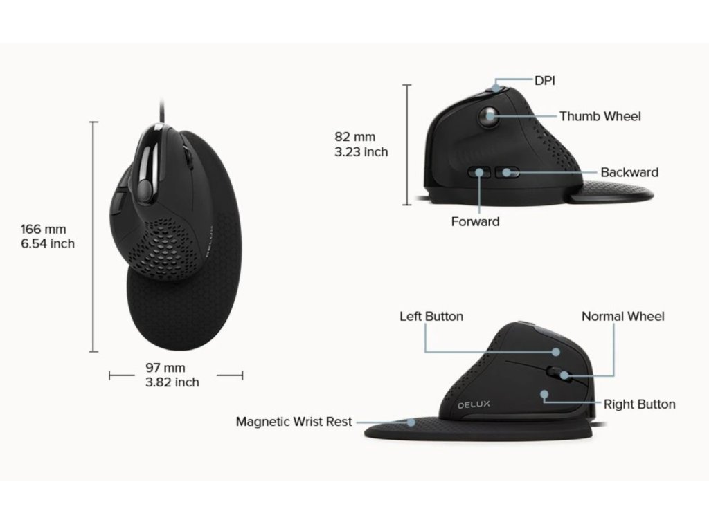 DeLux Delux M618XSU - DRÁTOVÁ VERTIKÁLNÍ ERGONOMICKÁ MYŠ