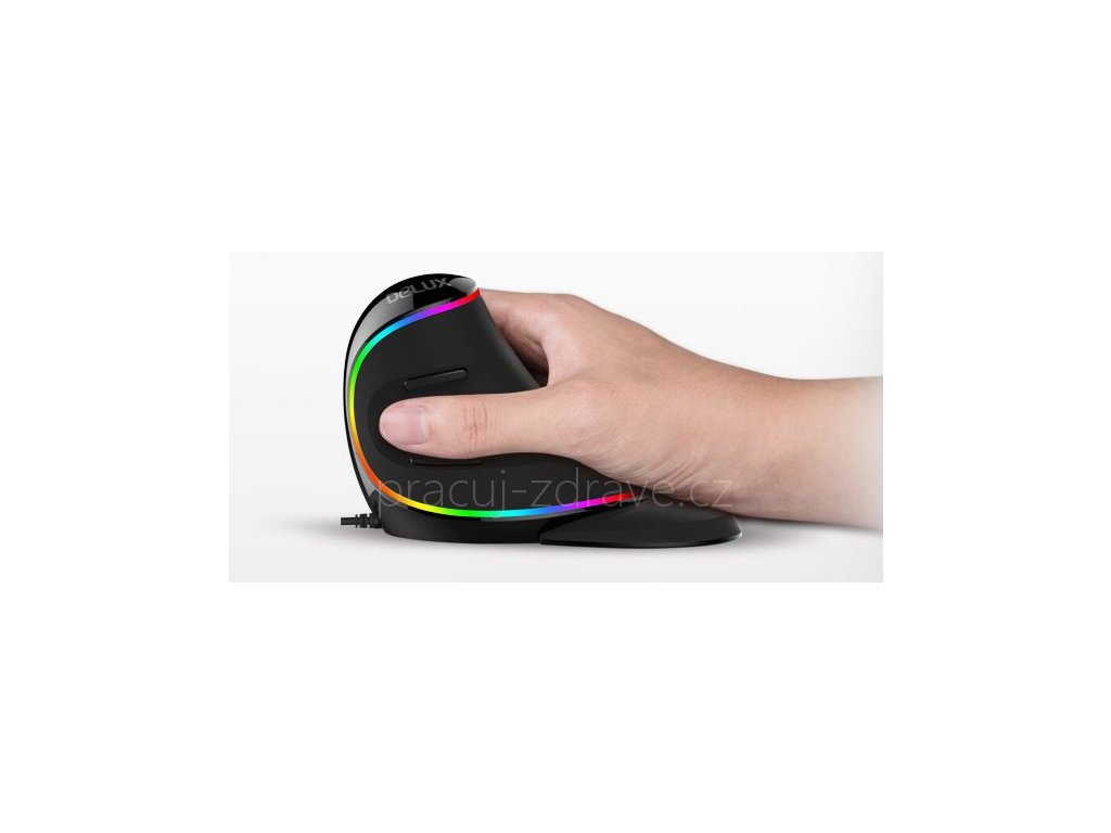 Vertikální myš DeLux M618 RGB PLUS je jedinečná tím, že umožňuje ruku a zápěstí v neutrálně uvolněné pozici s přirozeném uchopení.