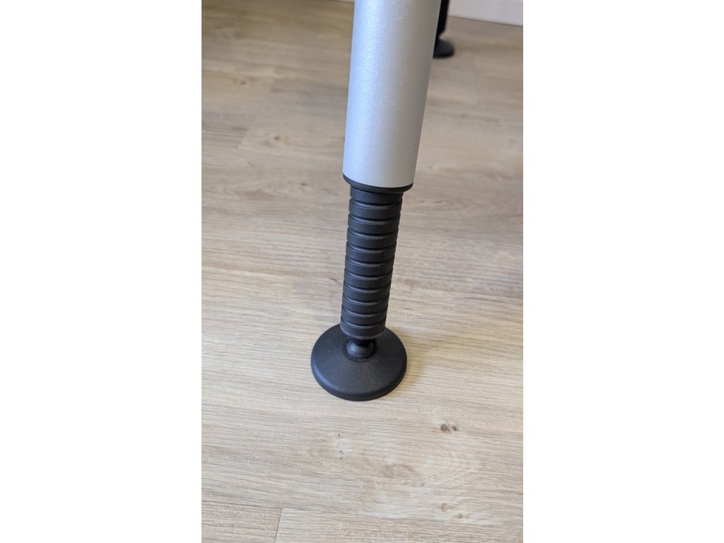 Výška stolu se nastavuje šroubováním černých rektifikačních nožiček, které mají jasnou aretaci pro snadné a přesné srovnání všech noh. -