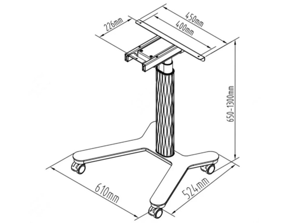 Hlavní části stolu je třísegmentový nastavitelný sloupek s jedním motorem, který je uchycen v pevné základně. Ta je vybavena bytelnými kolečky, zajišťující skvělou mobilitu.