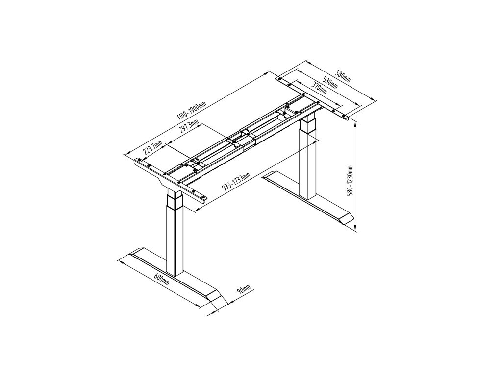 Nastavení výšky v rozmezí 580–1235 mm (bez desky).
