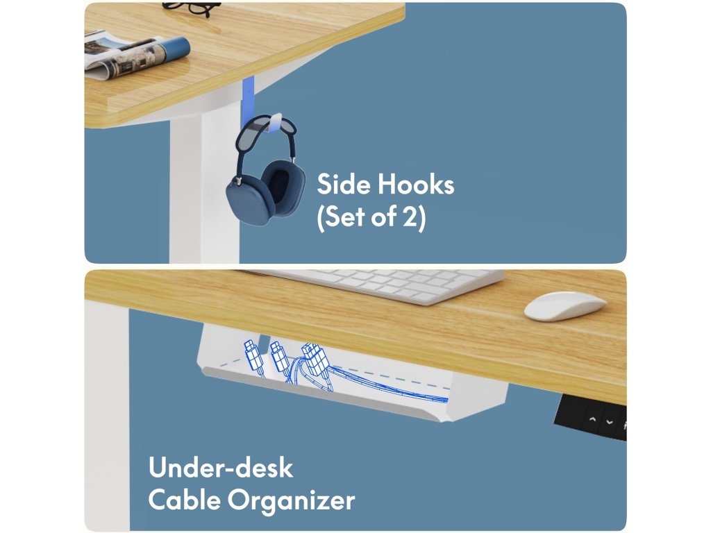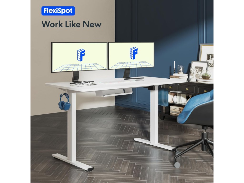 DeskTherapy Flexispot - 120x60 cm elektricky nastavitelný stůl včetně držáků na kabely a sluchátka