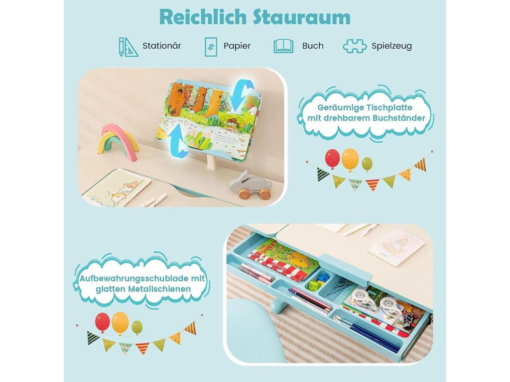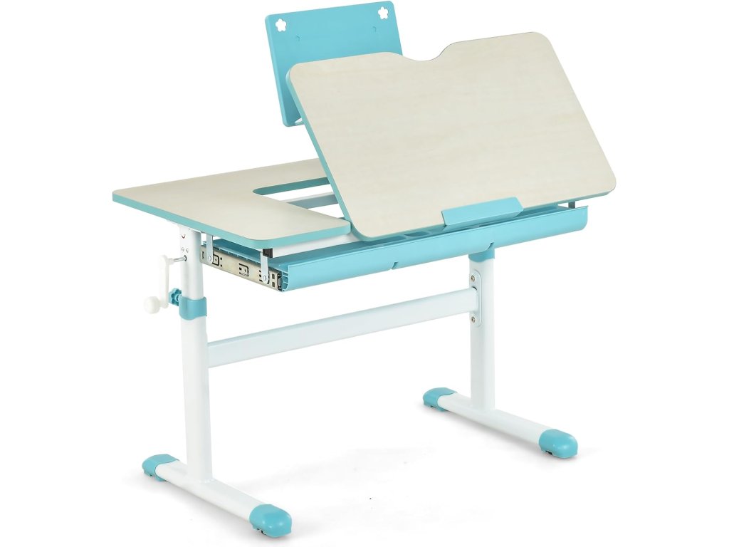 Dětský rostoucí a sklopný stůl COSTWAY START modrý pro děti od 3 - 12 let