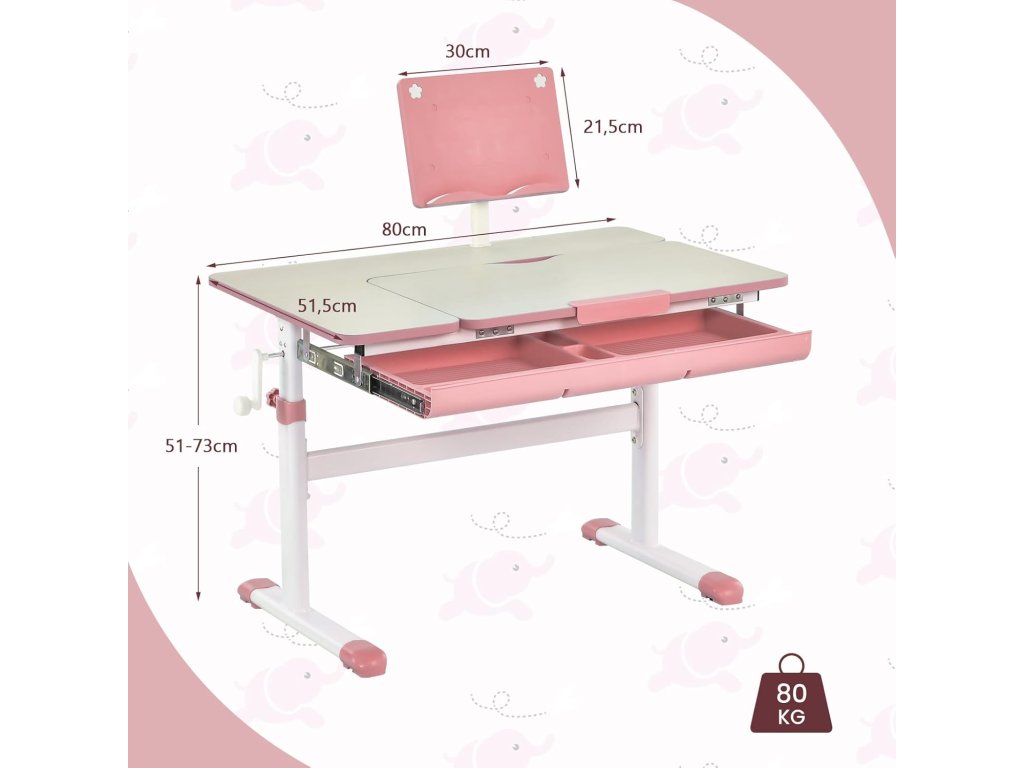 Díky výškově nastavitelnému designu se stůl snadno přizpůsobí aktuální výšce dítěte. Pomocí ruční kliky lze pracovní desku plynule zvedat nebo snižovat v rozmezí 51 až 73 cm, což zajišťuje ergonomické sezení po celé období školní docházky.