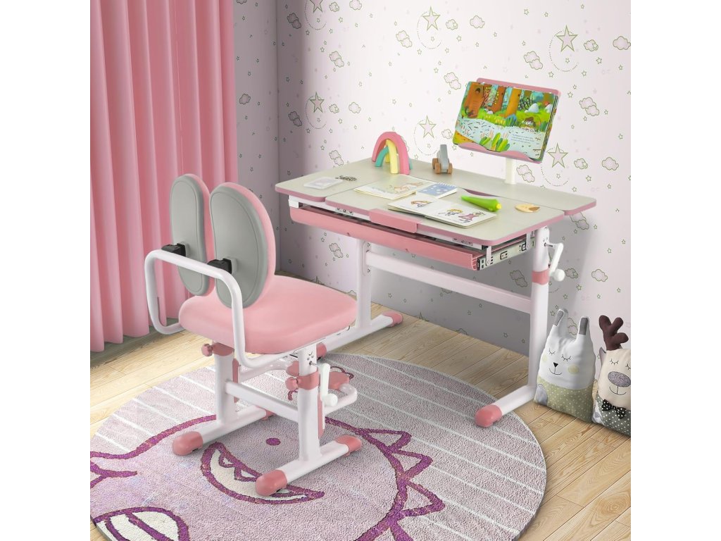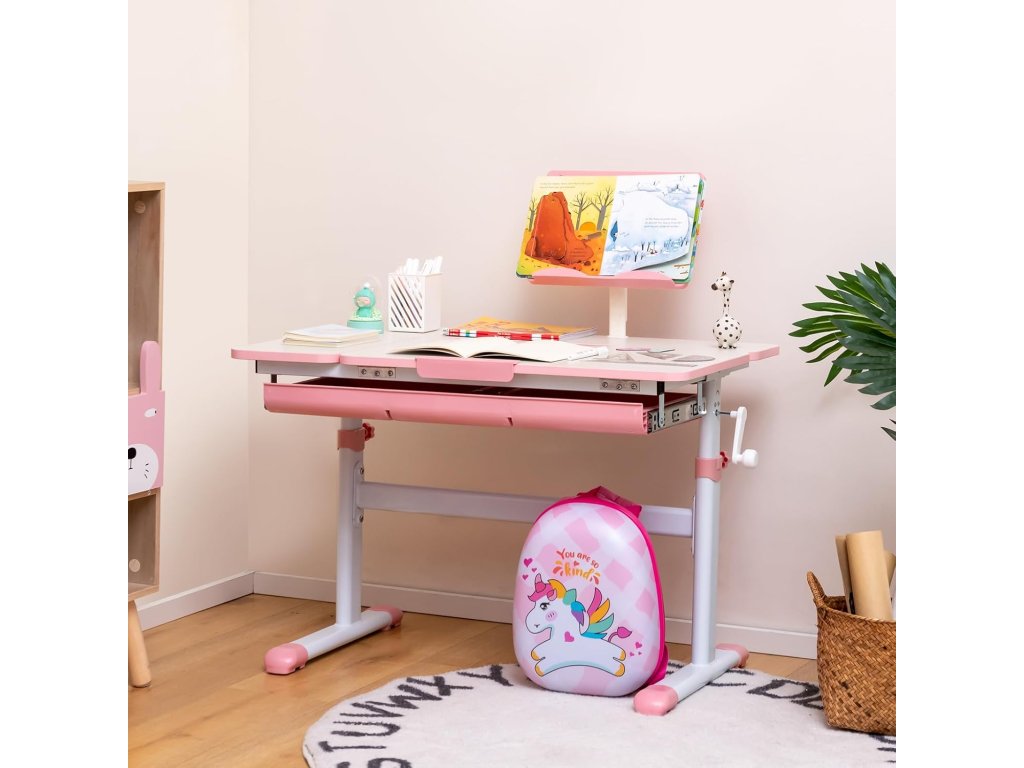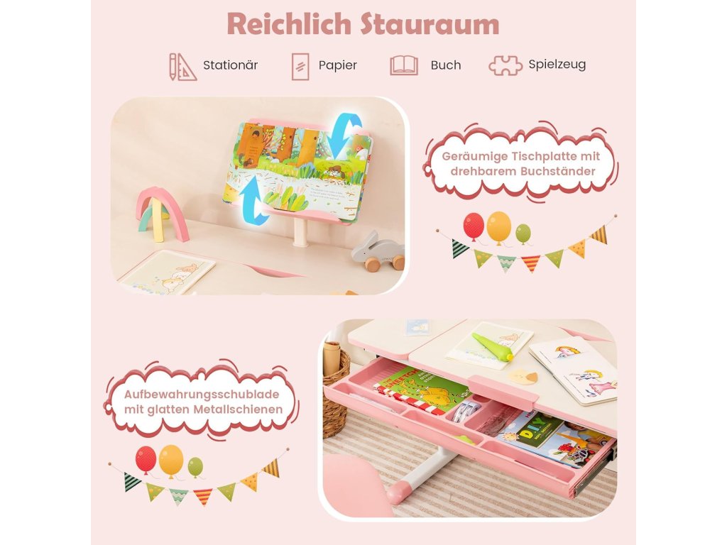 Dětský rostoucí a sklopný stůl COSTWAY START růžový pro děti od 3 - 12 let