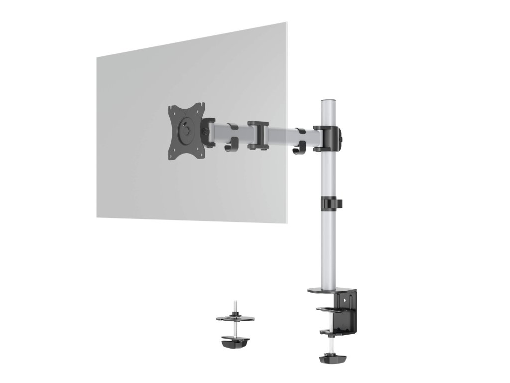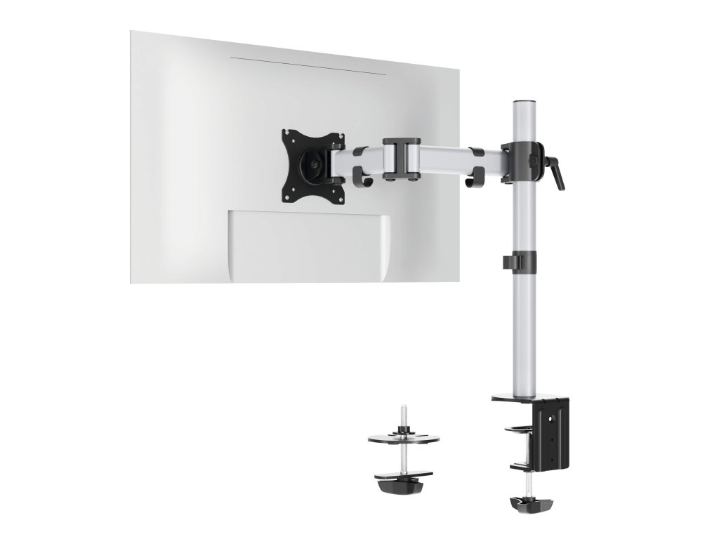 - Držák monitoru od německé firmy Durable pro 1 monitor včetně možnosti individuální montáže pomocí uchycení skrz stůl nebo stolní svorky.