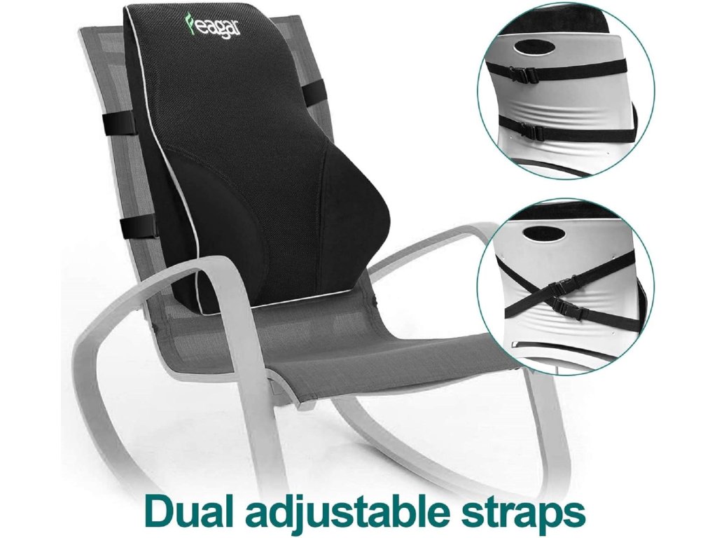 Součástí polštáře jsou dva nastavitelné popruhy, díky kterým lze snadno připevnit ke kancelářské, herní nebo jídelní židli, ale i k autosedačce. Polštář pevně drží na místě a neklouže ani při častém pohybu.