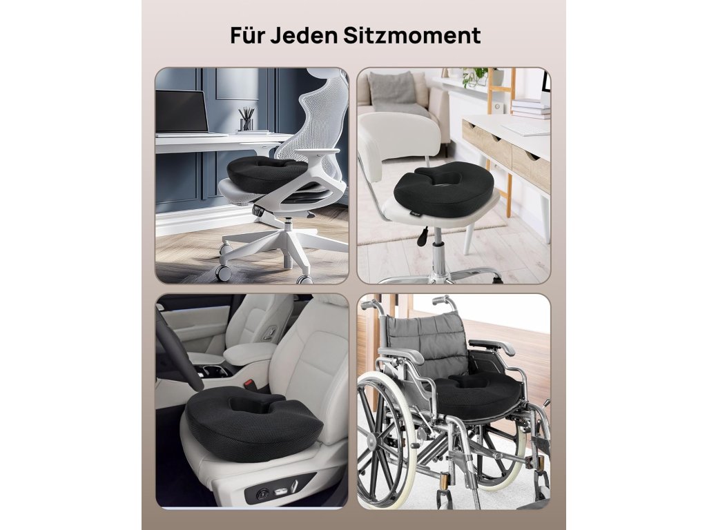 Vhodný pro kancelářské židle, auto, invalidní vozík i domácí použití. Integrovaná rukojeť usnadňuje přenášení – ideální pro administrativní práci, řízení, rekonvalescenci a domácí sezení.