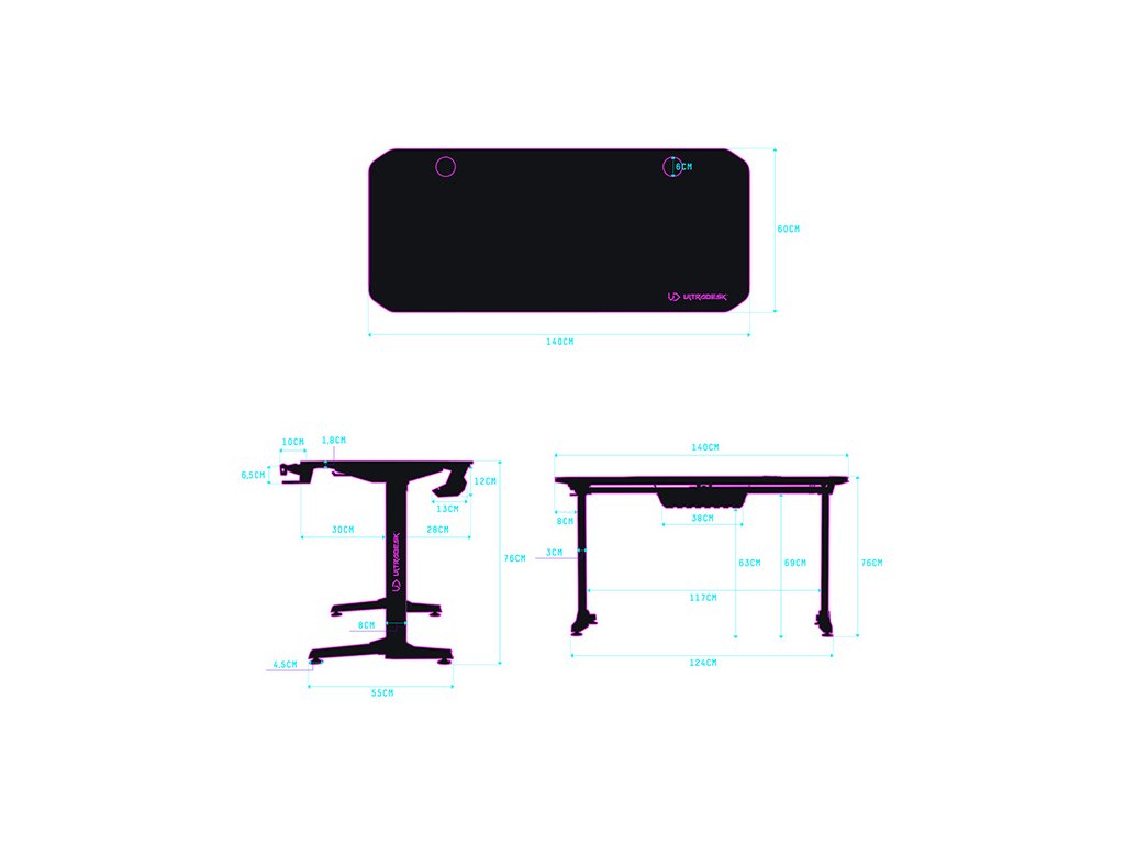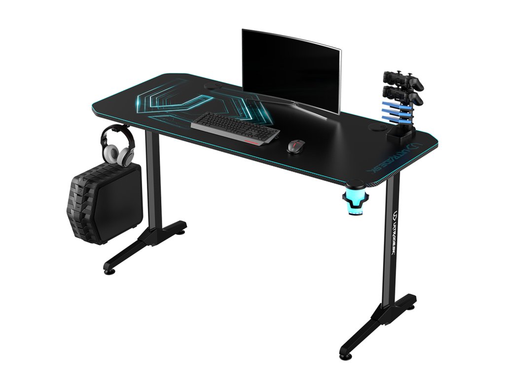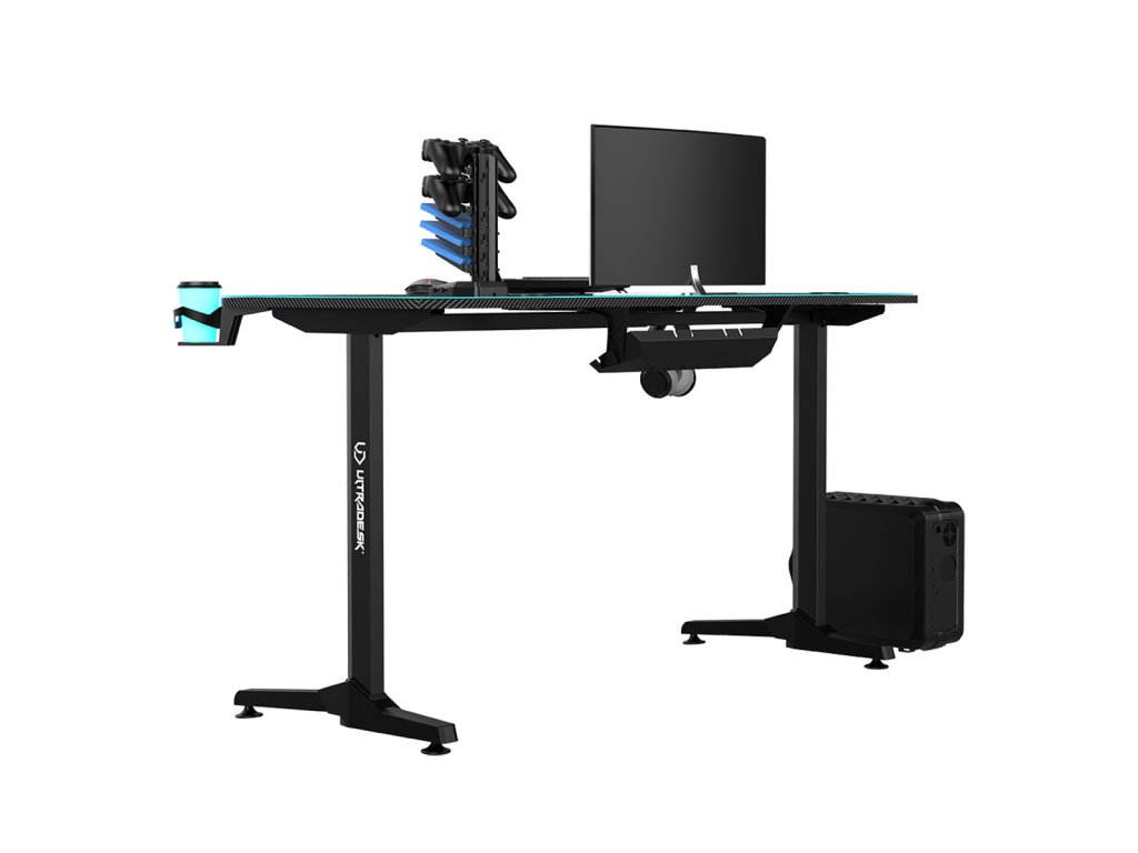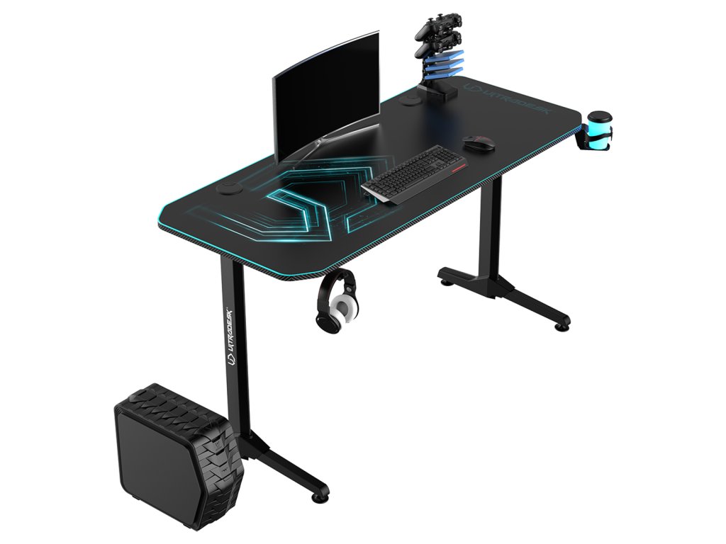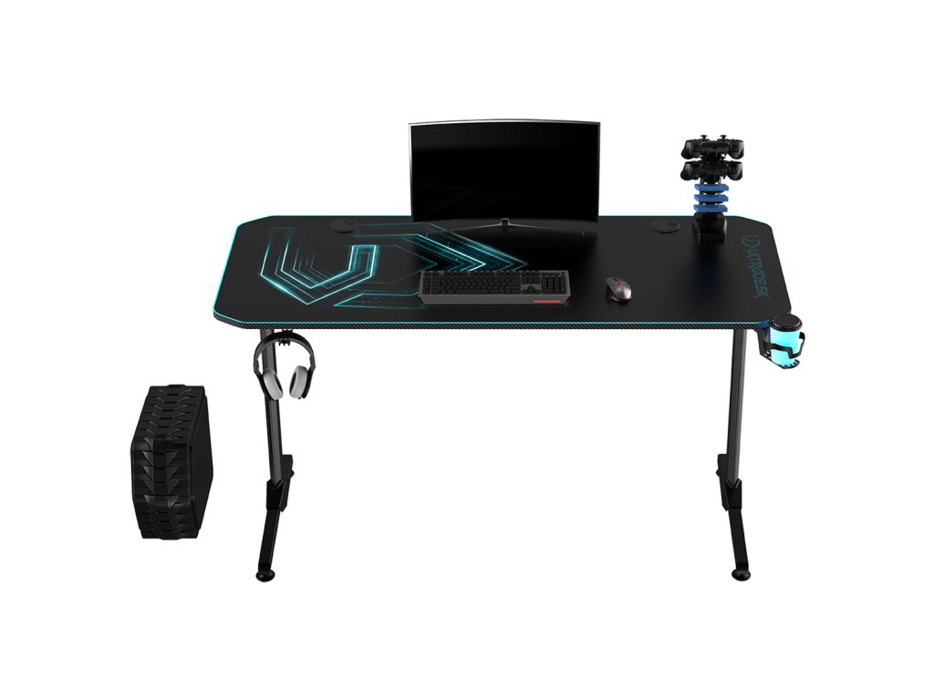 Herní stůl ULTRADESK FRAG - BLUE V3, 140x60 cm, 76 cm, s XXL podložkou pod myš, s ultradesk BEAM, držák sluchátek i nápojů