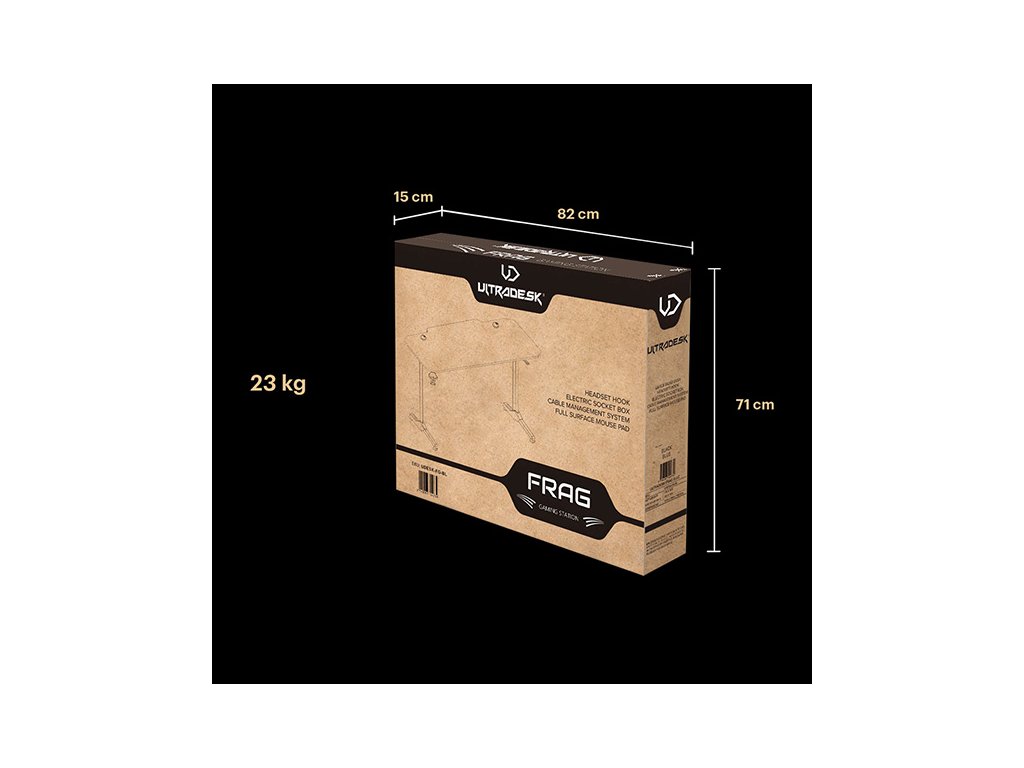 ULTRADESK FRAG se pyšní pracovní plochou, na kterou se vejde opravdu cokoliv - jeden monitor, dva monitory? A co takhle i tři menší monitory? Pravidelný pracovní tvar plochy umožní, že můžete stůl umístit kdekoliv v místnosti. Na celou pracovní plochu byl použit speciální nátěr, který chrání její vnitřek proti vlhkosti a náhodnému mechanickému poškození. Potřebujete hodně prostoru? FRAG je tu pro Vás!