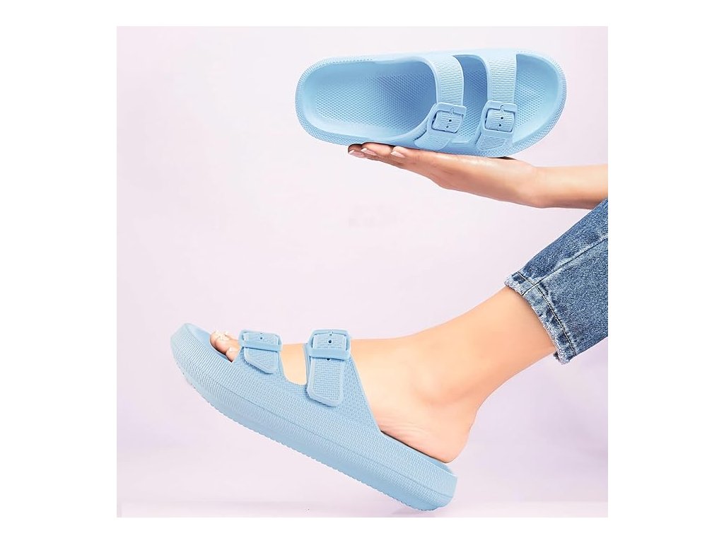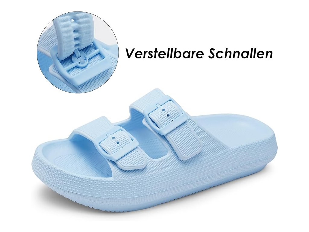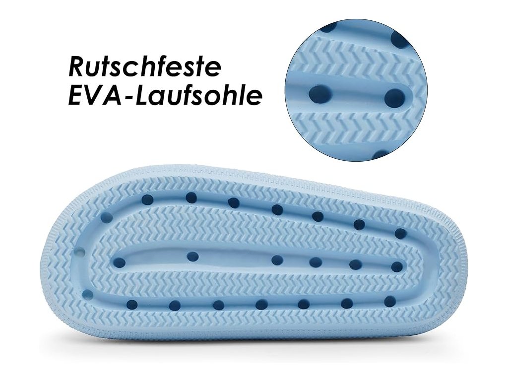 Sandály jsou vyrobeny z kvalitní EVA pěny – lehkého, měkkého a pružného materiálu, který tlumí došlap a nezatěžuje nohu ani při dlouhodobém nošení. Chůze v nich připomíná krok po obláčku.