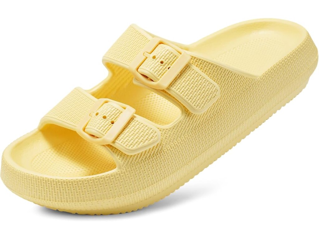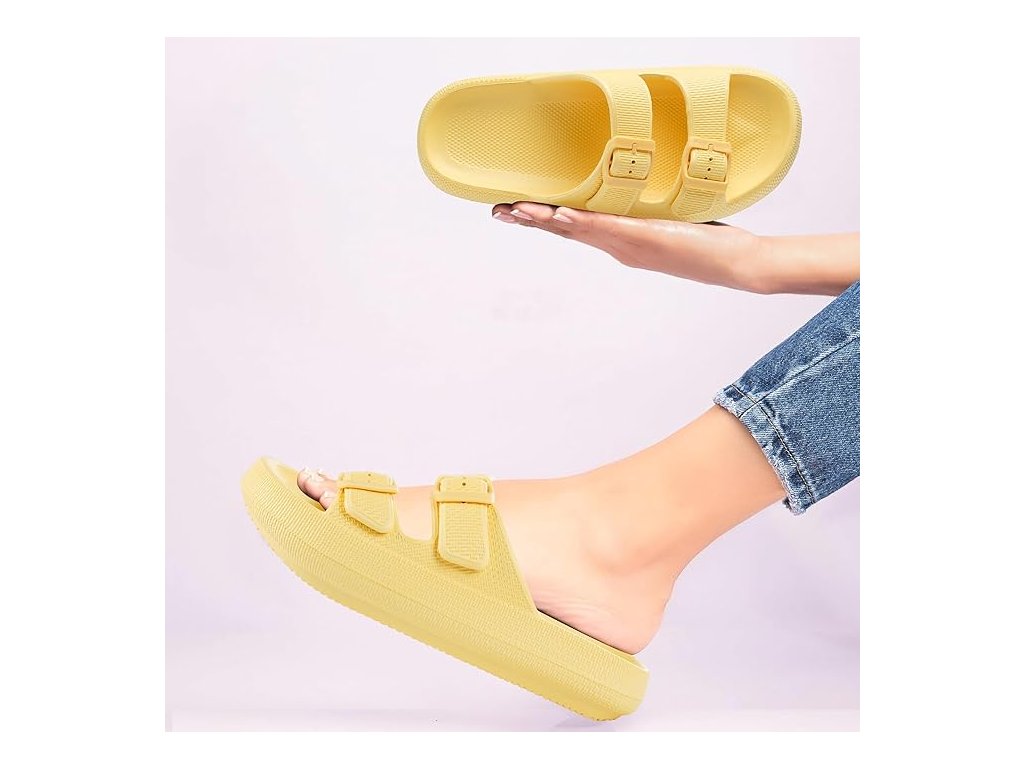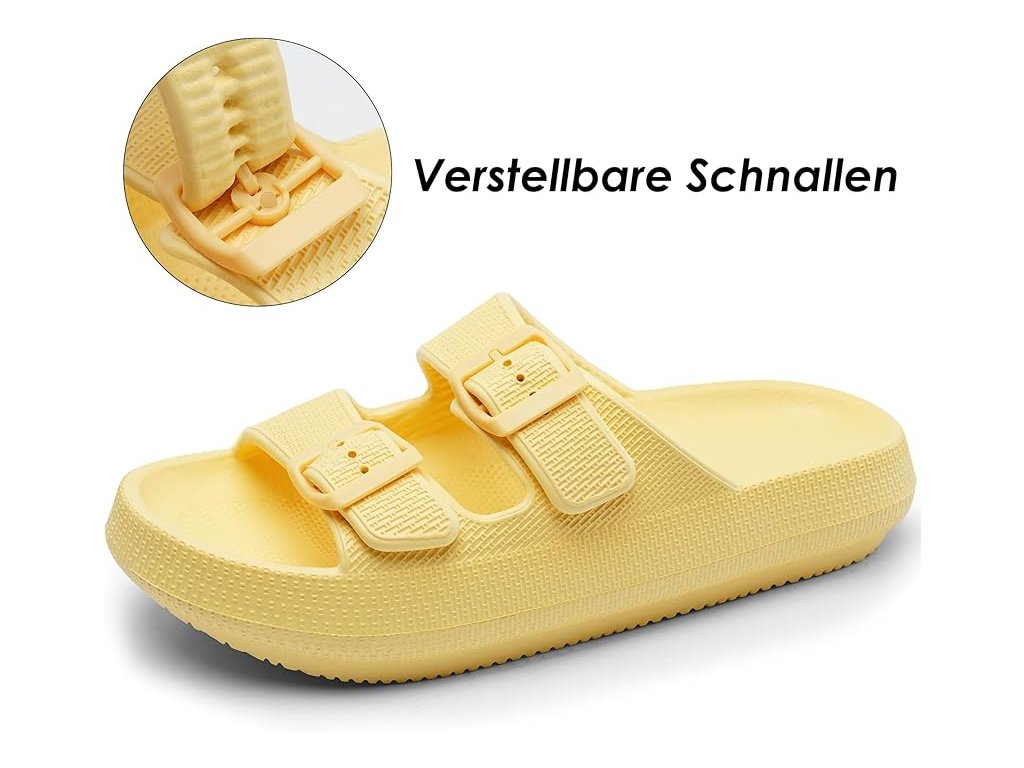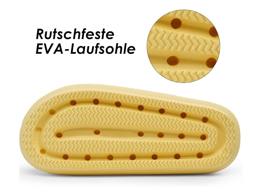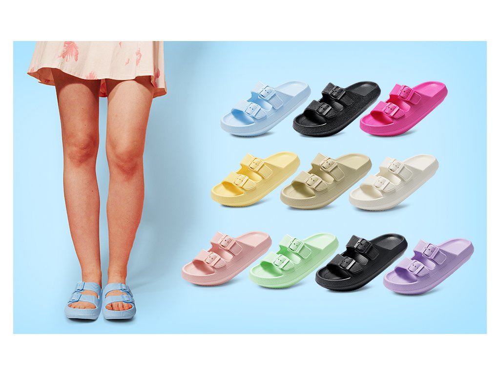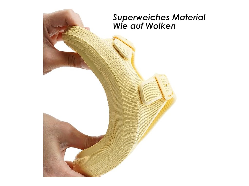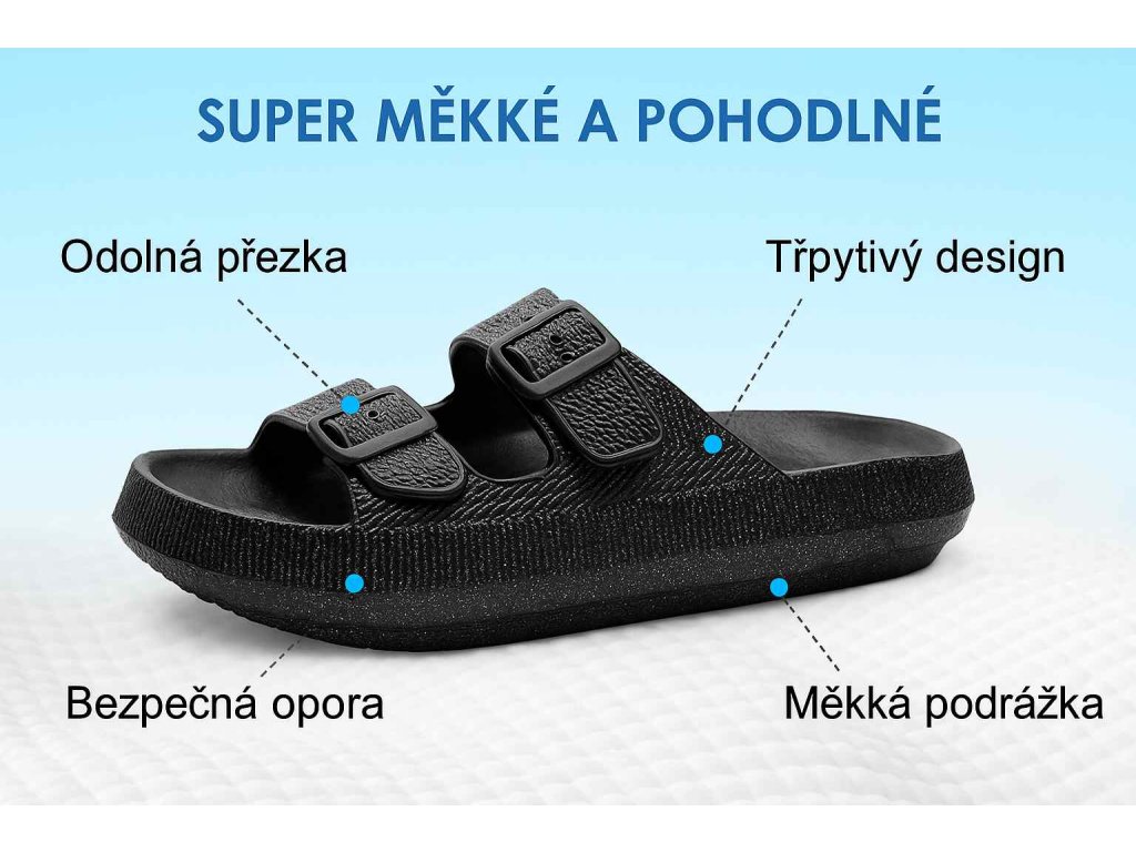Sandály jsou vyrobeny z kvalitní EVA pěny – lehkého, měkkého a pružného materiálu, který tlumí došlap a nezatěžuje nohu ani při dlouhodobém nošení. Chůze v nich připomíná krok po obláčku.