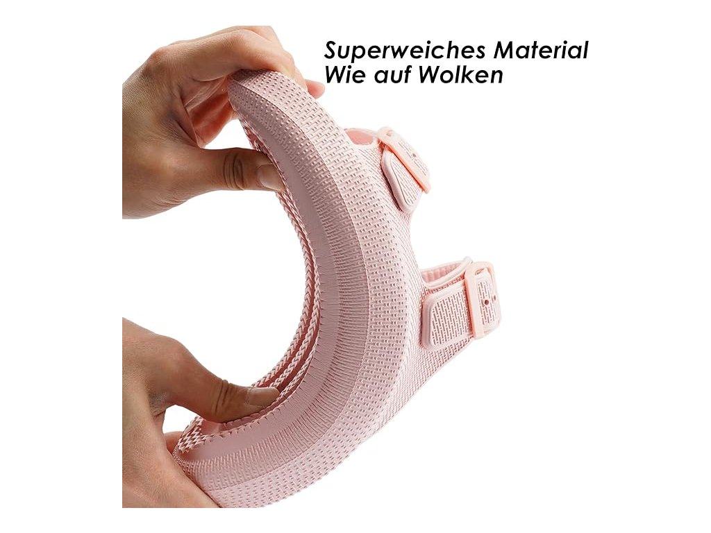 Sandály jsou vyrobeny z kvalitní EVA pěny – lehkého, měkkého a pružného materiálu, který tlumí došlap a nezatěžuje nohu ani při dlouhodobém nošení. Chůze v nich připomíná krok po obláčku.