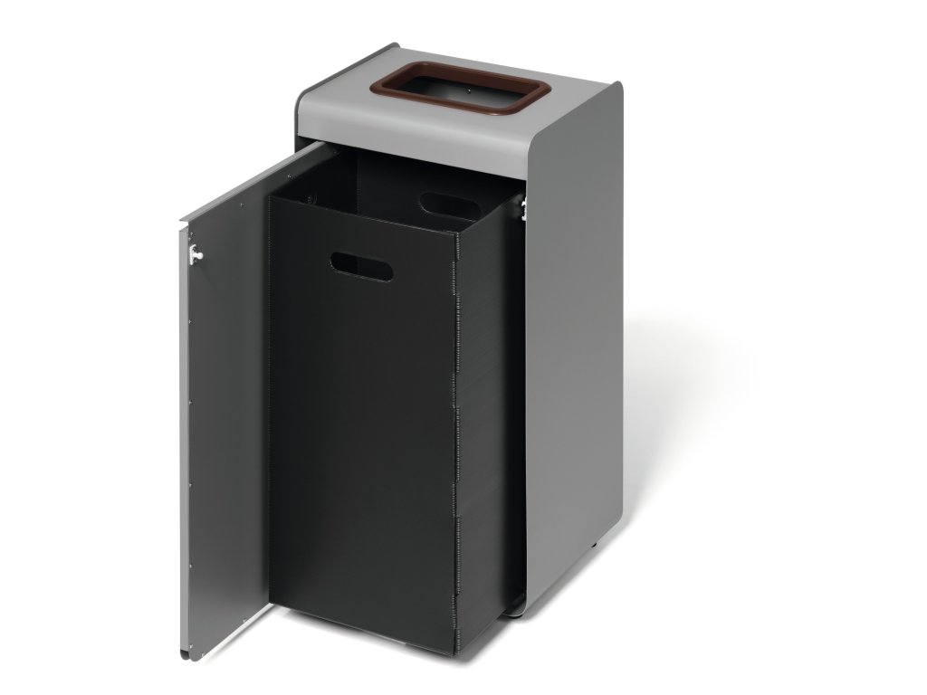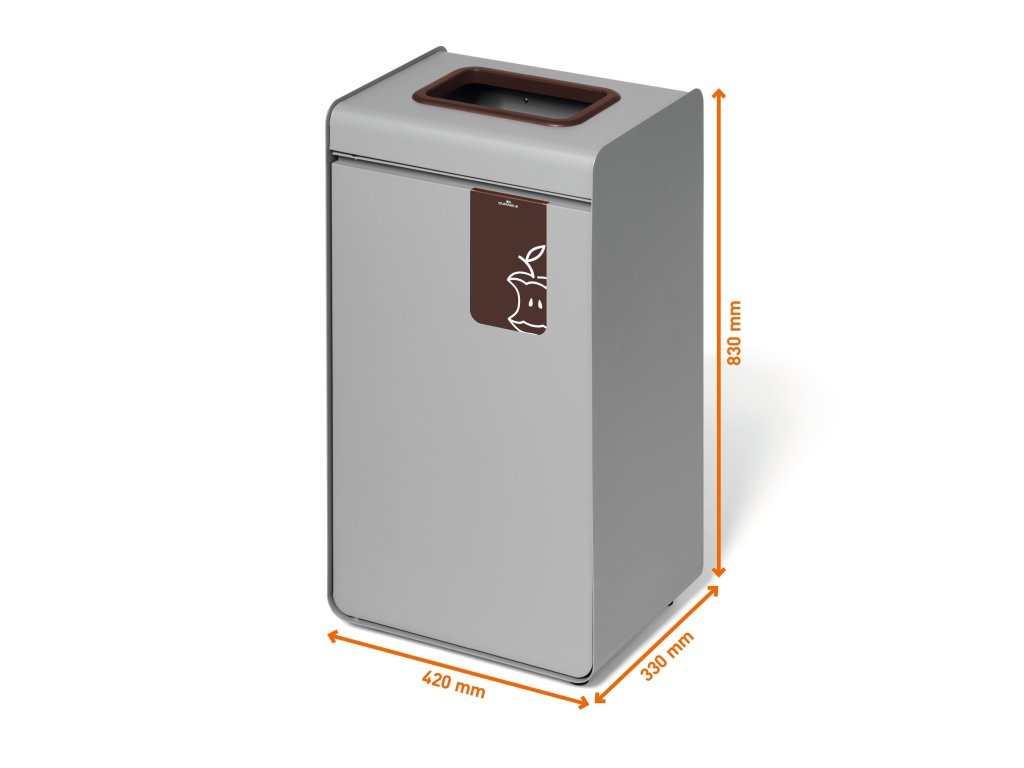 - Barevně odlišený hnědý vhazovací otvor a piktogram s motivem ohryzku jablka usnadňují správné třídění odpadu uživatelům v každém prostoru.