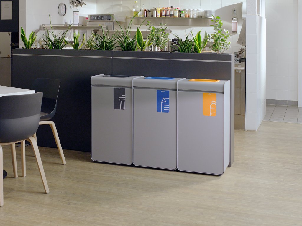 - Koš má objem 55 litrů, což z něj dělá ideální řešení pro kanceláře, školy, veřejné budovy nebo jídelny s vysokým provozem.