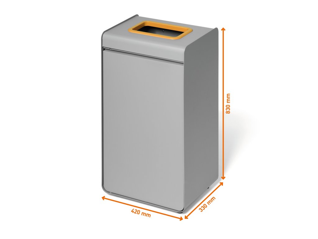 - Koš má objem 55 litrů, což z něj dělá ideální řešení pro kanceláře, školy, veřejné budovy nebo jídelny s vysokým provozem.
