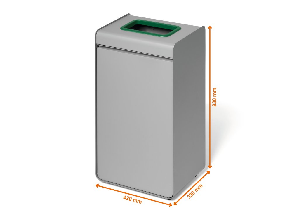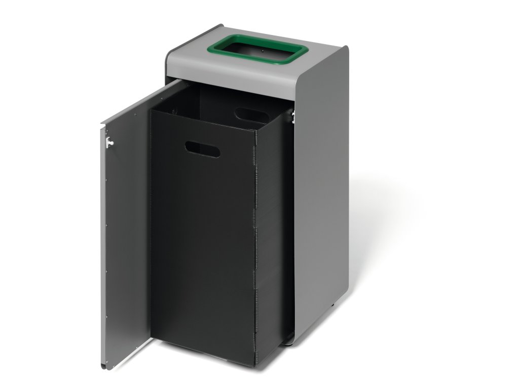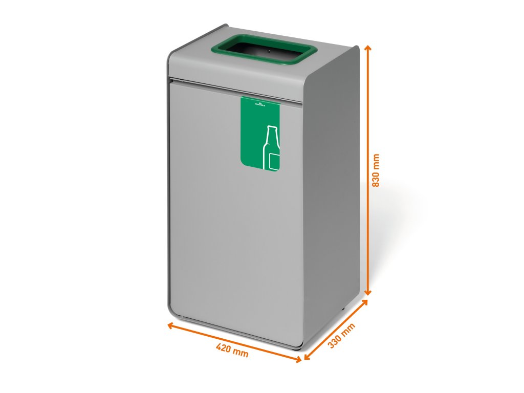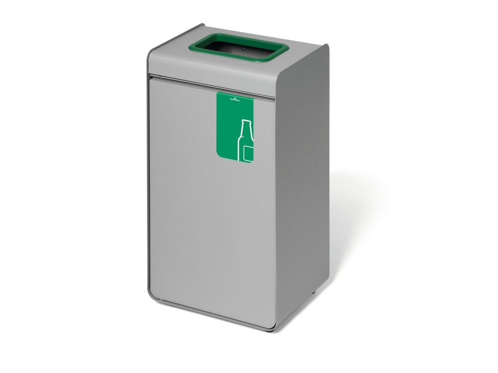 - Barevně odlišený zelený vhazovací otvor a piktogram s motivem skleněné láhve usnadňují správné třídění odpadu uživatelům v každém prostoru.