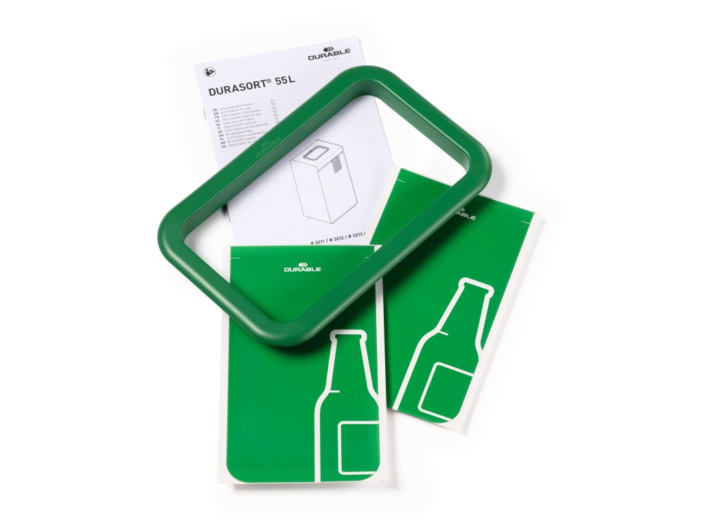 - Recyklační koš Durable Durasort 55 l je určen pro efektivní třídění skla a zajišťuje čisté a přehledné pracovní prostředí.