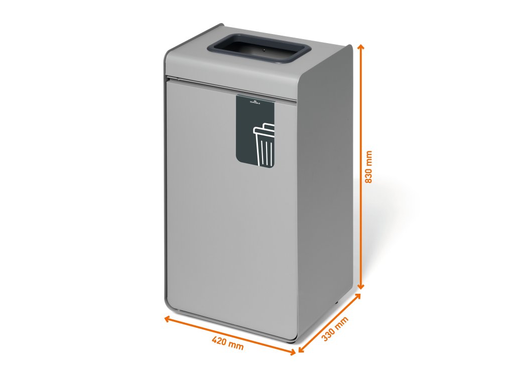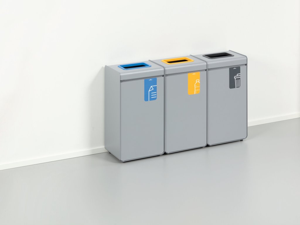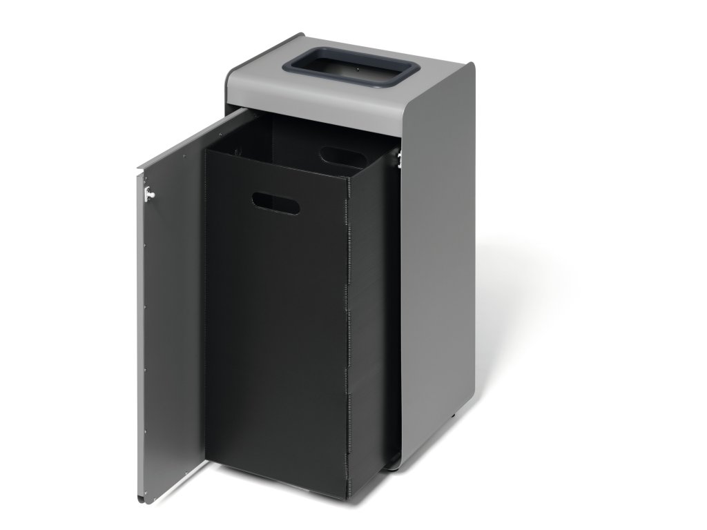 - Barevně odlišený šedý vhazovací otvor a piktogram s motivem popelnice usnadňují správné třídění odpadu uživatelům v každém prostoru.