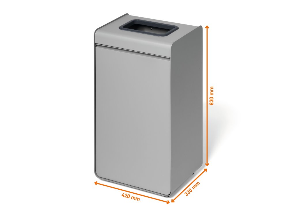 - Koš má objem 55 litrů, což z něj dělá ideální řešení pro kanceláře, školy, veřejné budovy nebo jídelny s vysokým provozem.
