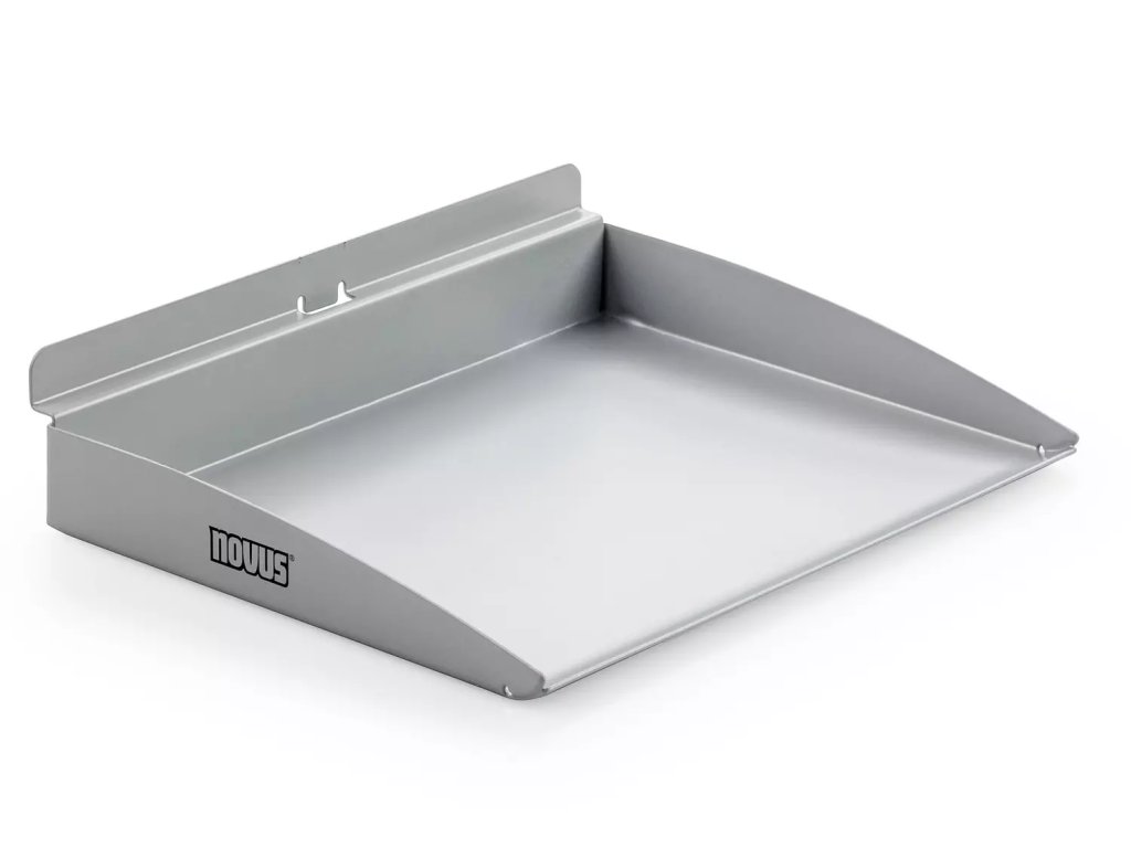 Box je vyroben z pevného kovu s práškovou povrchovou úpravou, která chrání před opotřebením i poškrábáním. Montáž je možná výhradně na organizační systém SlatWall, který zajišťuje pevné uchycení a snadný přístup.