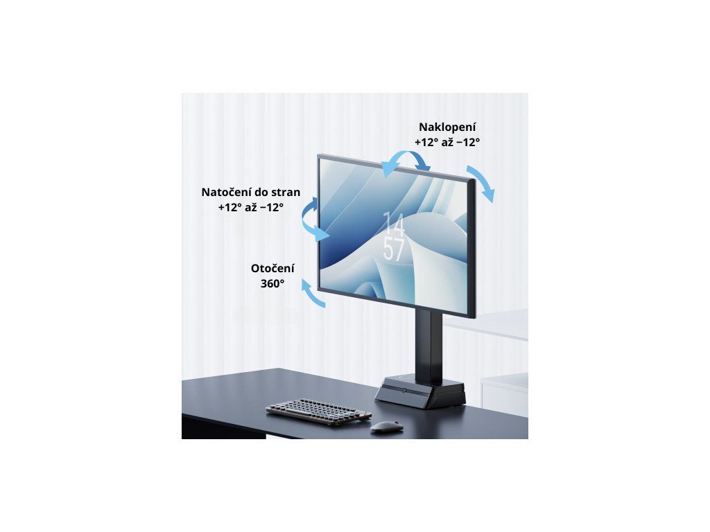 Elektrický držák monitoru nové generace, který automaticky nastaví ideální výšku a přizpůsobí se vašemu tělu i pracovnímu stylu. Kombinace moderní technologie, ergonomie a čistého designu.