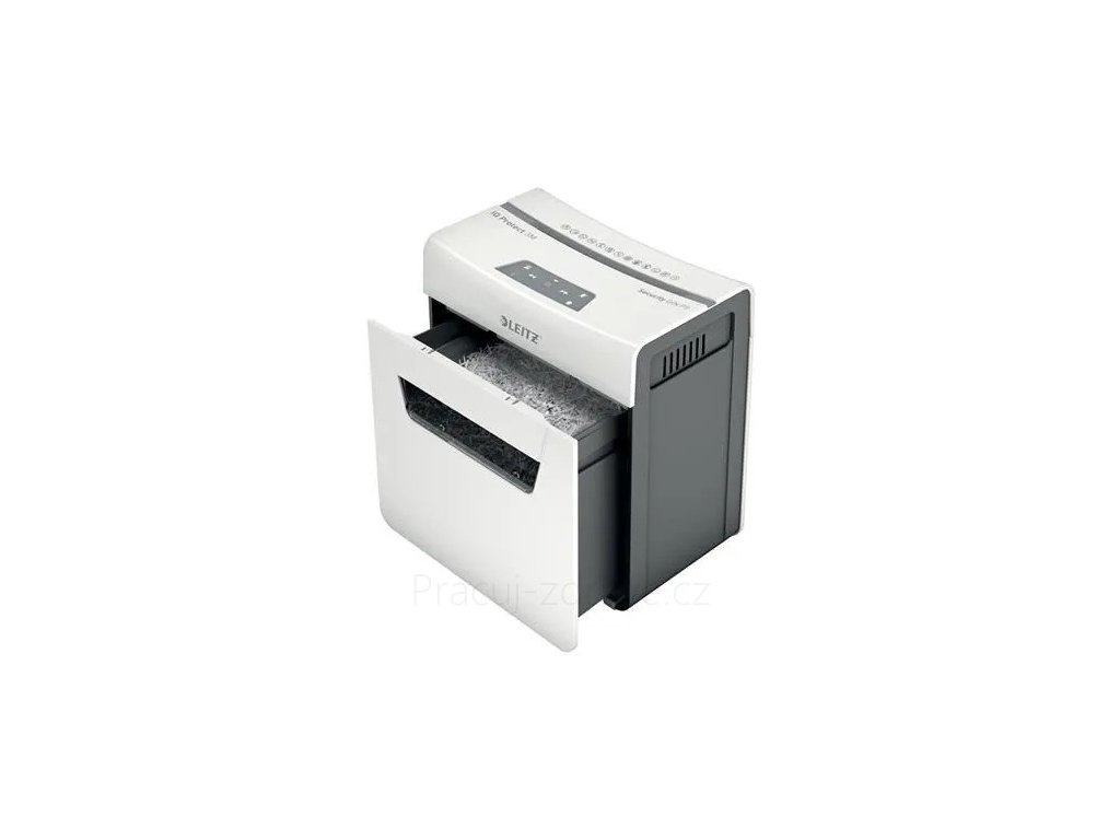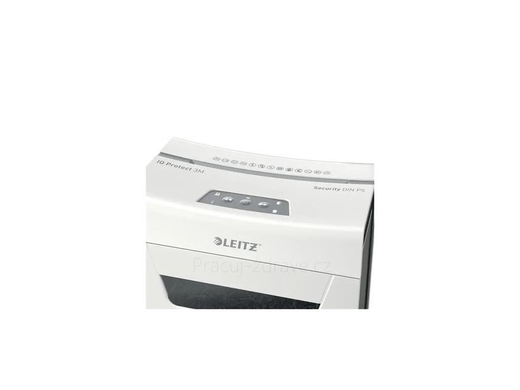 Skartovačka papíru Leitz IQ Protect Premium 3M bílá velmi tichá, DIN P5, skartuje až 3 papíry najednou včerně sponek