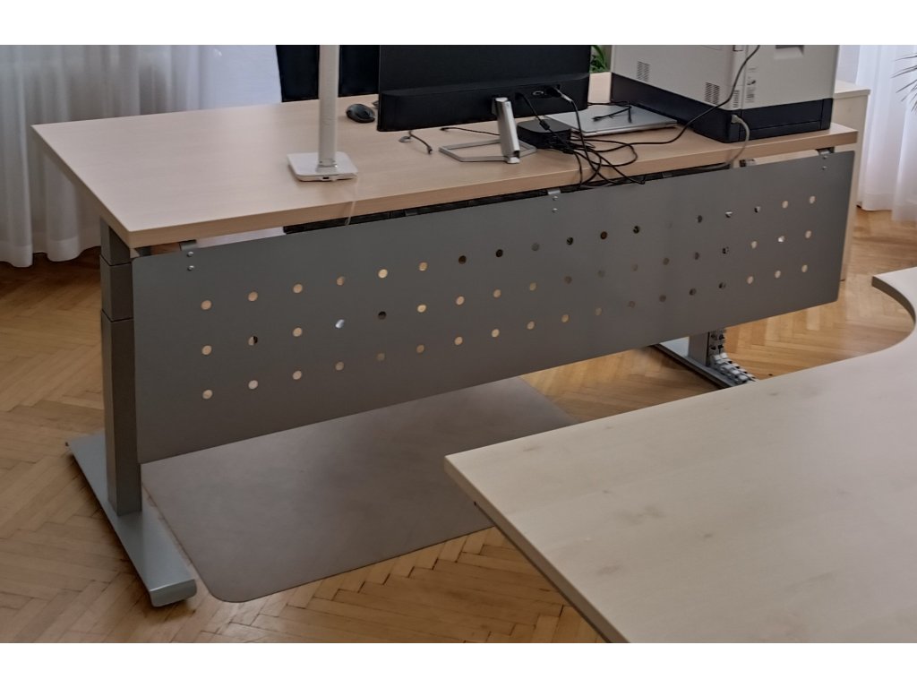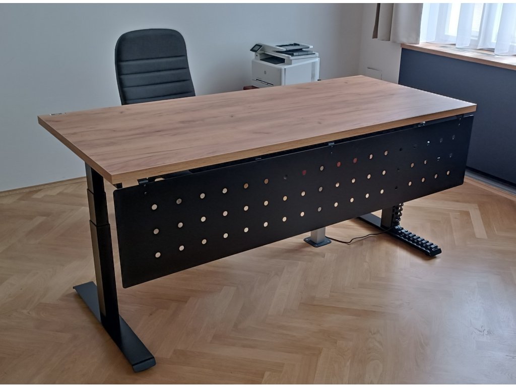 Pro pevné i výškově nastavitelné stoly nabízíme spodní krycí paravan v moderním, nadčasovém designu. Slouží k zakrytí kabeláže a technických prvků pod deskou stolu, čímž pomáhá udržet čistý a reprezentativní vzhled pracoviště.