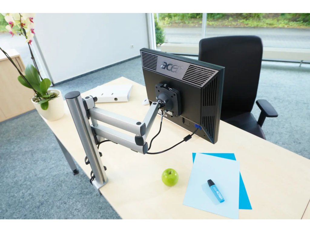 NOVUS TSS folding arm III je vysoce kvalitní dvoudílné kloubové rameno s plynulým výškovým nastavením, které dává monitoru volnost – a vám klid, že si ho nastavíte přesně tak, jak vám to vyhovuje. Díky QuickRelease připnete monitor rychle a jednoduše a uchycení je připravené pro VESA 75/100. Rameno je vhodné pro ploché monitory do 10 kg a počítá s běžnou realitou pracovního dne: jednou potřebujete monitor blíž, jindy dál, a nechcete u toho pokaždé řešit kompromisy.